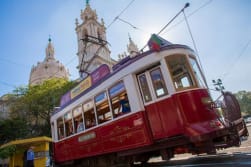 Sightseeing bus tours + Famous Tram 28 route on a red historical tramcar